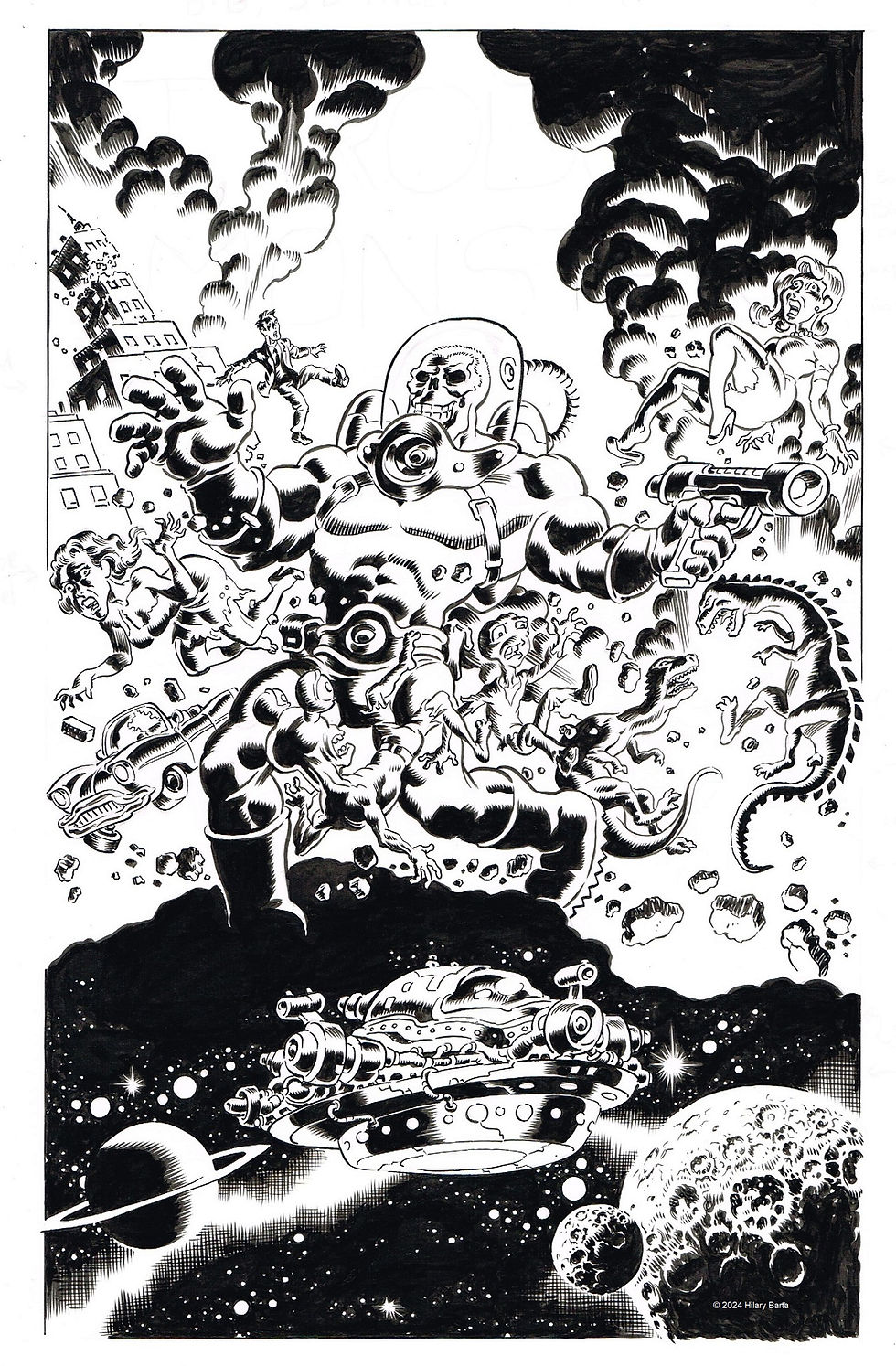 And here's the inks for the first page. Imagine this in exploding off the page in three dimensions!
